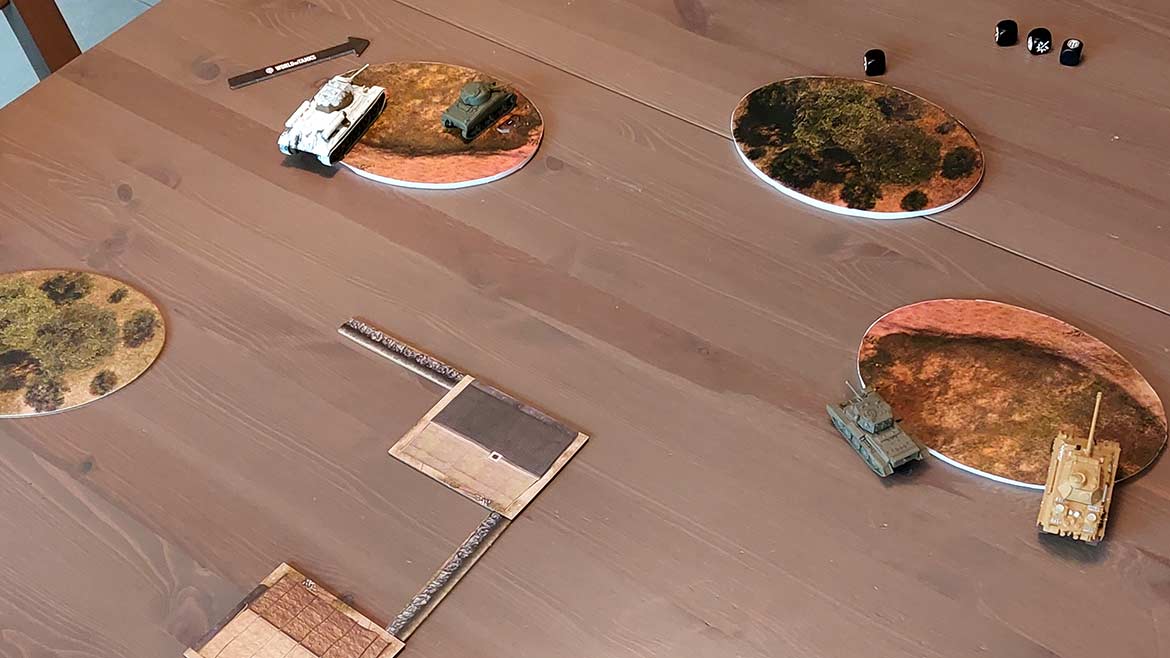 - La Phase de Tir, où les joueurs ont la possibilité de tirer avec chacun de leurs Chars dans l’ordre d’Initiative, cette fois en commençant par la plus élevée pour aller vers la plus basse. Les tirs qui peuvent être effectués dépendent de la Ligne de Mire